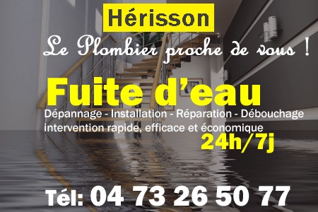 Dépannage fuite à Hérisson en 30min 24h/7j
