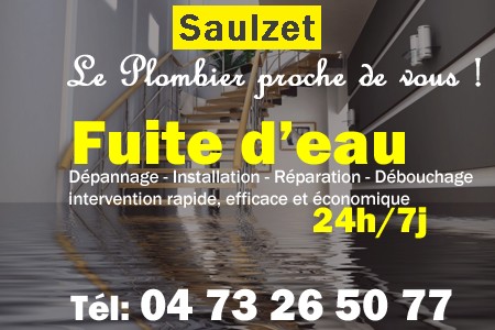 Types d'intervention fuite d'eau à Saulzet
