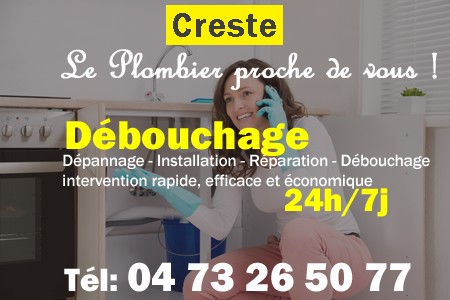 Dépannage canalisation bouchée à Creste en 30min 24h/7j