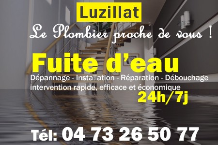 Dépannage fuite à Luzillat en 30min 24h/7j